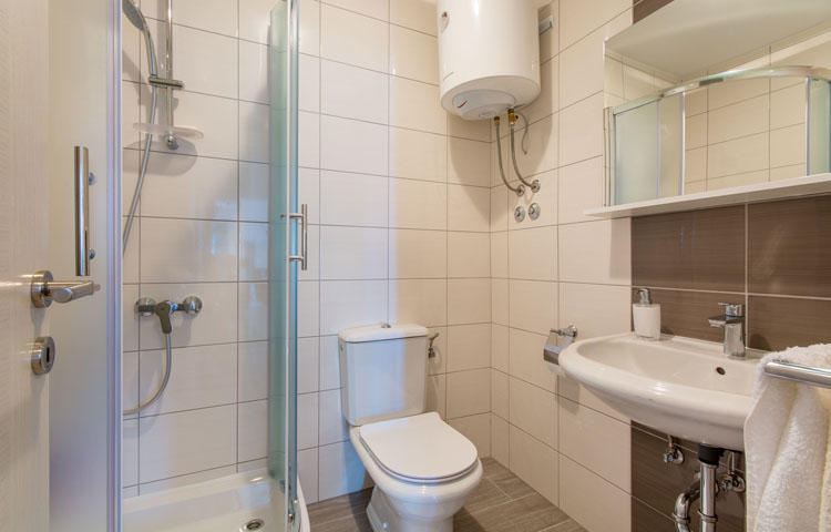 This studio with a marital bed is located on the groundfloor making it an ideal choice for 2 persons. The terrace is equipped with garden furniture, furthermore this apartment as well offers a splendid view of the sea.