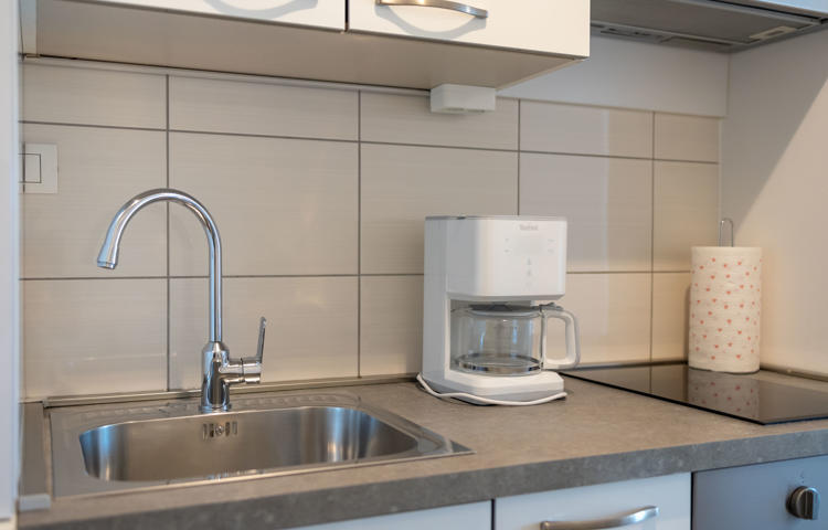 The kitchen in the apartment itself is also completely furnished.