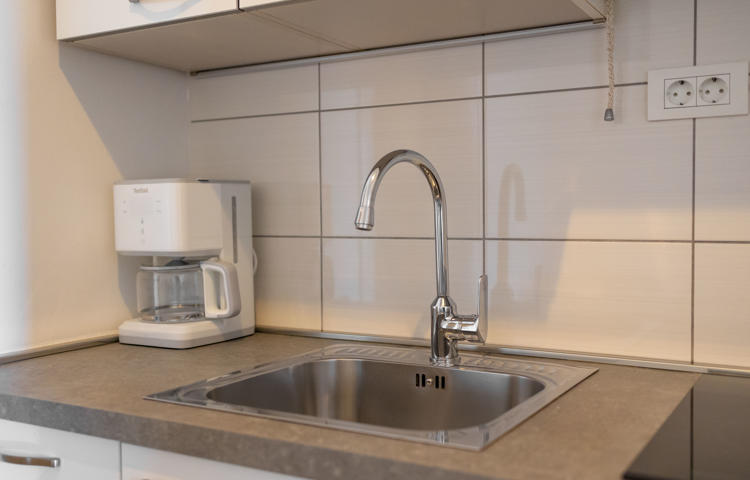 The apartment contains an electric kettle, an oven, a refrigerator and an air conditioning. The kitchen is completely furnished.