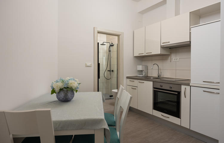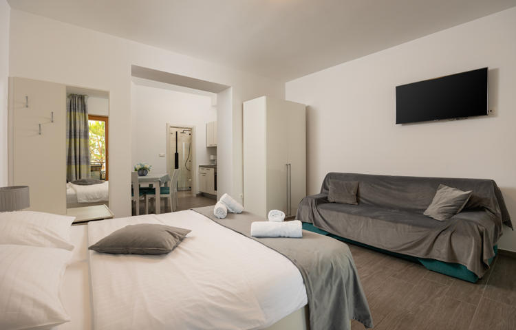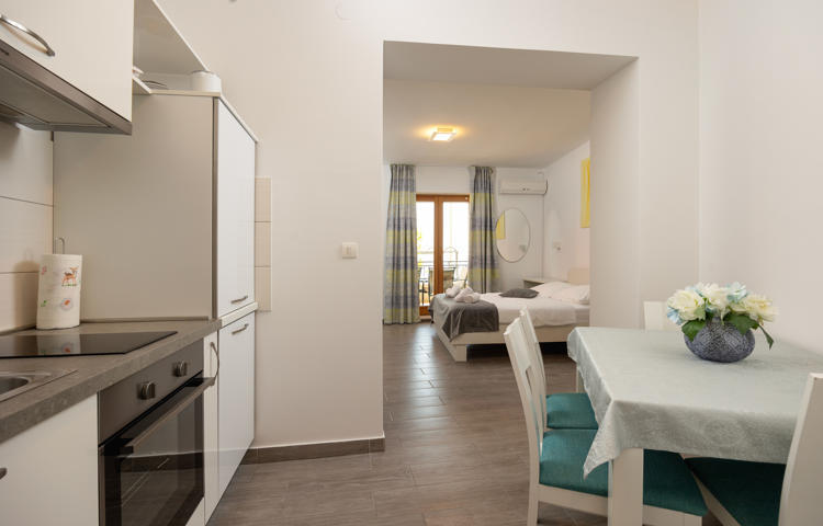 Studio apartment on the ground floor of the house disposes with a terrace overlooking the sea and is suitable for 2+2 persons. Within the apartment a marital bed as well as a sofa suitable for 2 persons can be found.